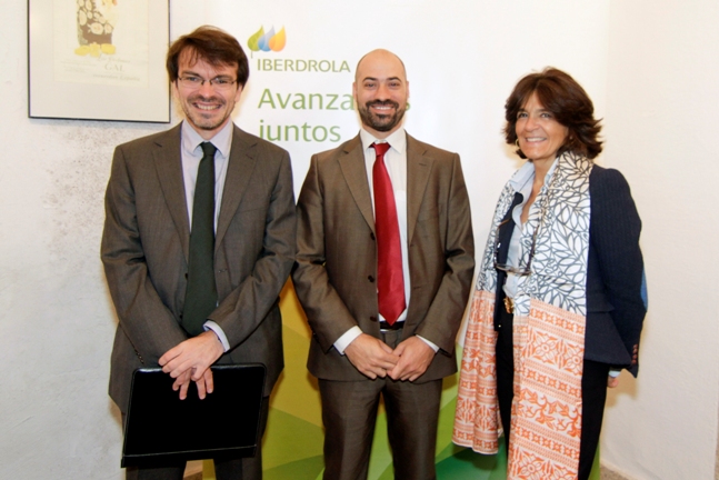 En la foto: David Martín, delegado de Iberdrola en Extremadura; Jorge Prieto, director general de la Cámara de Comercio de Cáceres; y Ana Alcalde, responsable de Compras y Seguros de Iberdrola España.