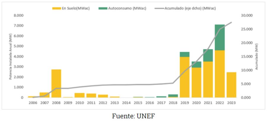Finalmente, 2023 es el primer año desde 2016 en el que se aprecia una deceleración de la potencia instalada respecto al año anterior. La inflación y subida de los tipos provoca que muchas instalaciones incluso planificadas, se congelen para utilizar los recursos en otras actuaciones, por lo que pueda venir. Y los datos de 2024 también reflejarán una caída de la potencia instalada frente a 2023. Esta tendencia responde a la estabilización de un sector que ha presentado un crecimiento muy acelerado, y pasa a una fase de madurez en la que las empresas que dan servicio pasan de “despachar” clientes a buscar clientes, de enviar ofertas “estándar” a hacer ofertas personalizadas, de contratar un llave en mano a precio a contar con una ingeniería de propiedad, de ejecutar con una ingeniería básica a concretar con ingeniería de detalle.