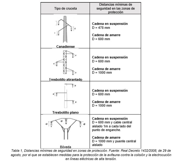 - Líneas en áreas con concentraciones de aves esteparias o que crucen cauces fluviales utilizados por aves migratorias.